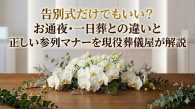 最新記事一覧 葬儀 「葬儀屋さんが伝えたい!お葬式で実はNGなこと10選【知らないと恥ずかしい】」 2026/04/04 介護 葬儀屋おばちゃんの日常|認知症の母に誕生日ケーキを届けたら何故か「社長さんはすごいね!」と... 2026/04/02 葬儀 終活って何から始めればいい?現役葬儀屋が教える初心者向けステップガイド 2026/04/01 葬儀 直葬は本当に安い?現役葬儀屋が教える費用の実態と後悔しないための注意点 2026/03/31 介護 介護用おむつの選び方|現役介護おばちゃんが失敗から学んだ本音レビュー 2026/03/30 葬儀 海洋散骨とは?費用・流れ・業者の選び方を徹底解説 2026/03/28 ケーキ マドレーヌをきれいに袋へ詰める方法|焼き菓子が売り物っぽく見えるコツ 2026/03/27 ケーキ 【保存版】おばちゃん流 初心者のよくあるお菓子作り「困った!」6選|原因と対処法 2026/03/14 日記 ひな祭りケーキを作る時に意識したこ|春らしさは色と苺で決まる 2026/03/03 葬儀 変死(異状死)になってしまった時の葬儀費用をやさしく解説 2026/02/27 1234