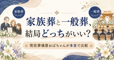 最新記事一覧 葬儀 家族葬に呼ばれたら?現役葬儀屋おばちゃんが参列マナーと判断基準を徹底解説! 2026/04/23 葬儀 四十九日法要って何をするの?現役葬儀屋おばちゃんが流れ・準備・マナーを丸ごと解説! 2026/04/16 日記 お客様から誕生日ケーキとシュークリームのご注文をいただきました!喜んでもらえて最高の息抜き... 2026/04/16 葬儀 お香典はいくら包む?関係別の相場と絶対NG金額を現役葬儀屋おばちゃんが解説! 2026/04/12 ケーキ 「型なしで作れる本格フレジエ|失敗しないムースリーヌのポイント」 2026/04/11 介護 介護中の両親に安全な野菜を食べさせたくて「無農薬野菜のミレー」を調べてみた! 2026/04/10 葬儀 葬儀屋のおばちゃんがやらかした!現場失敗談3選 2026/04/08 葬儀 告別式だけでもいい?お通夜・一日葬との違いと正しい参列マナーを現役葬儀屋が解説 2026/04/05 葬儀 「葬儀屋さんが伝えたい!お葬式で実はNGなこと10選【知らないと恥ずかしい】」 2026/04/04 介護 葬儀屋おばちゃんの日常|認知症の母に誕生日ケーキを届けたら何故か「社長さんはすごいね!」と... 2026/04/02 12345