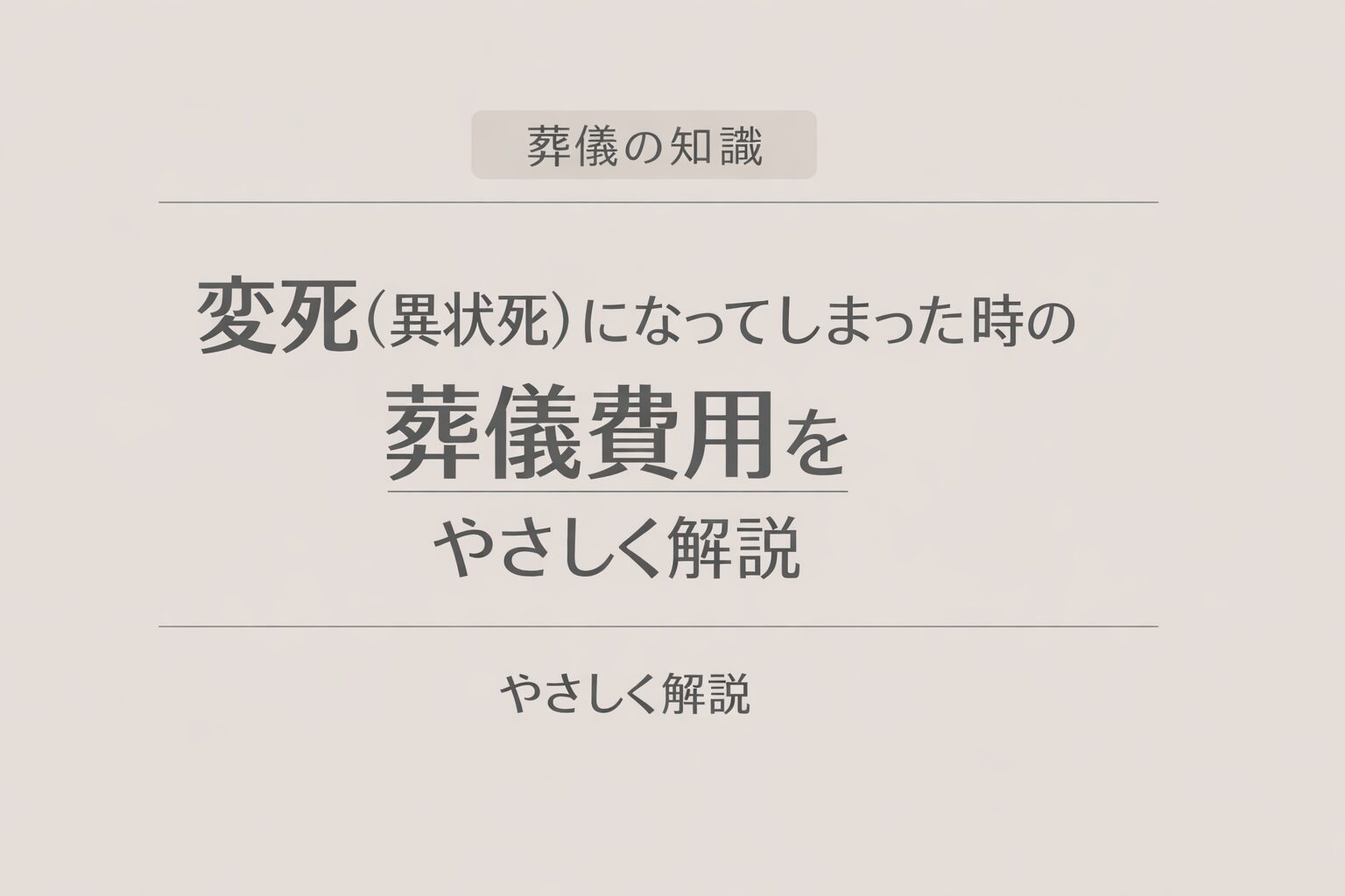 今日は「変死(異状死)になってしまった時の葬儀費用」を、むずかしい専門用語をほどいて優しく解説していくよ!
